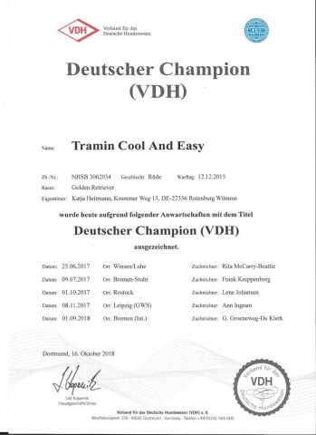 Im Jahr 2018 erreichten wir nach 3 Ausstellungen die letzte Anwartschaft für den Deutschen Ch, VDH und DRC Club.
