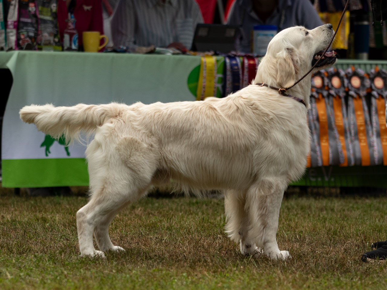 Er hat ein wunderschönes cremefarbenes Haarkleid, eine gute knochenstärke, excellente Vor- sowie Hinterhand Winkellungen und super Pigment. Alles in allem ein Traum von Golden Retriever.